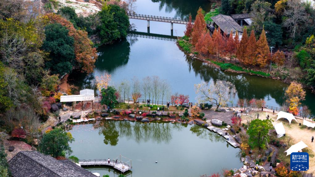 12月9日,游客参观福州九峰村(无人机照片)。冬天的福建省福州市晋安区寿山乡九峰村,森林密布。火红的枫叶、水杉与鹌鹑村、清澈的溪流、石拱桥相得益彰。它们共同构成了吸引众多游客的冬季景观。近年来,四面环山的九峰村不断投入资金用于村内古迹修复、基础设施和公共服务建设、乡村旅游产业发展。新华社记者 江克红 摄 (编辑:饶春雨)
